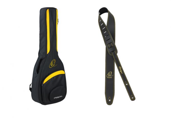 Do gitary dołączany jest solidny, nylonowy pokrowiec Ortega OABB, a także szeroki, skórzany pasek w kolorze czarnym Ortega OSL2-85BK.