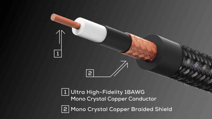 Wielożyłowy przewód środkowy 18 AWG wykonano z 99,99% czystej beztlenowej miedzi monokrystalicznej, zapewniając pełny, zrównoważony ton z ciepłem, mocą i czystością. Ekranowanie z plecionej miedzi monokrystalicznej i złącza pokryte 24-karatowym złotem dodatkowo zwiększają wydajność, a stylowa, tkana powłoka zewnętrzna gładko zwija się i zapewnia trwałość.