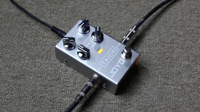 W kilku słowach, Joyo R-02 “TaiChi” to efekt raczej z rodzaju tych delikatniejszych; subtelniejszych aniżeli współczesne kostki overdrive. Na wyposażeniu znalazło się kilka klasycznych potencjometrów: Volume, Gain, Tone i zupełnie nowy Voice służący do regulacji zakresu częstotliwości. Więcej na jego temat pisaliśmy w tekście promującym nową w owym czasie prezentację video: Joyo R-02 “TaiChi” Overdrive, kolejny efekt z oficjalną prezentacją!
