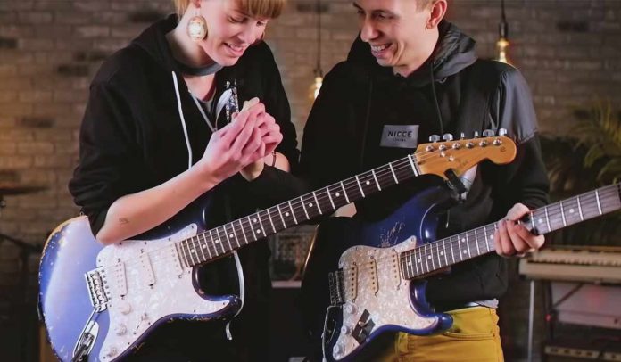 Zobaczcie lekcję gitarową, w której Cory Wong pokazuje koleżance, Emily Browning swoje knyfy „kosiarkowe”. 🙂
