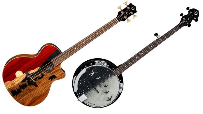 Na zakończenie bas i banjo! Tak, gitary basowej również nie mogło zabraknąć. Luna Guitars oferuje w nowym katalogu co prawda tylko jeden model, ale za to jaki! Zobaczcie koniecznie, bo gitarka robi ogromne wrażenie! A banjo jak to banjo… Niewielu na nim grało, więc oceńcie sami.
