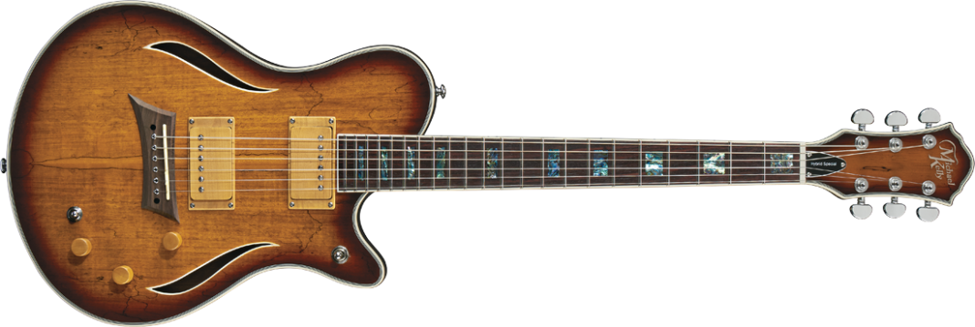Czymże jest więc owa hybryda? Najprościej rzecz ujmując, jest to połączenie gitary akustycznej oraz elektrycznej. Jest to zdecydowanie coś więcej niż tradycyjna konstrukcja „gitara elektryczna + piezo” lub konstrukcja typu semi-hollow. Otrzymujemy tutaj mahoniowy korpus z komorami rezonansowymi, klonową płytę wierzchnią typu Spalt, siodełko z syntetycznego grafitu oraz palisandrowy (!) mostek.
