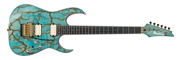 Najwyższych lotów odmiana RG w unikalnym wykończeniu Lander Blue Turquoise. Korpus z afrykańskiego mahoniu z topem z egzotycznego klonu wypełnionego żywicą w kolorze złotym; 3-częściowa szyjka z połączenia drewna wenge i amarantu. Pickupy DiMarzio Air Norton (neck) i Tone Zone (bridge) i ruchomy mostek Edge, czyli shredderska klasyka w najlepszym wydaniu! Oczywiście instrument “Made In Japan”.