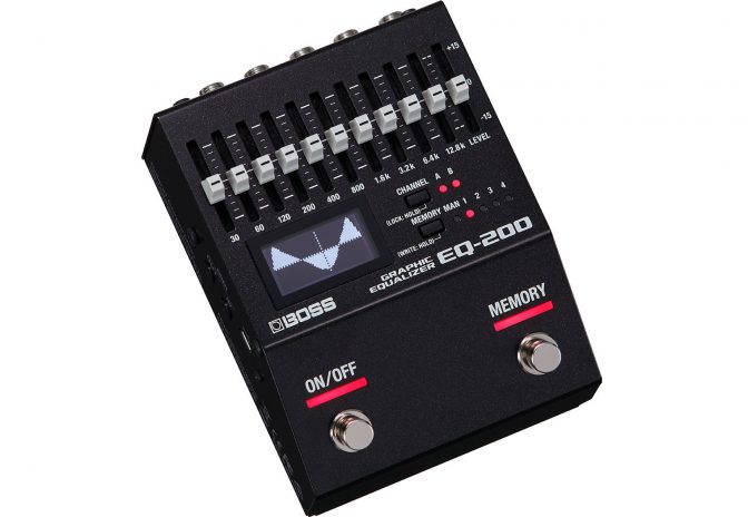 Graficzny equalizer to bardzo popularne urządzenie, które wielu producentów docenia i odkrywa na nowo w tym również BOSS. EQ-200 Graphic Equalizer ma być najbardziej elastycznym, kompaktowym equalizerem gitarowym i basowym, jaki kiedykolwiek udało się stworzyć. Wyposażono go w dwa kanały, każdy z regulacją 10 pasm korekcji, które mogą pracować stereo, równolegle lub szeregowo, a nawet współpracować z zewnętrznymi efektami dla dalszego kształtowania brzmienia. Wyświetlacz graficzny pokazuje typ krzywej korekcji. Urządzenie posiada również dalsze trzy typy zakresu częstotliwości 30 Hz do 12.8 kHz, 32.1 Hz do 16 kHz i 28 Hz do 14 kHz, które pozwalają dopasować je do różnych instrumentów.