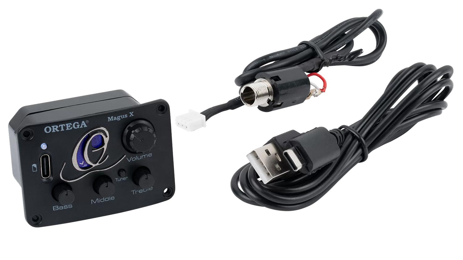 Wśród systemów nagłośnieniowych do gitar akustycznych i klasycznych coraz częściej pojawiają się rozwiązania z wbudowanymi akumulatorami. Przykładem takiego podejścia jest Ortega MAGUSX/G – preamp oferujący typowe funkcje użytkowe, ale zasilany nie baterią 9V, lecz wbudowanym akumulatorem ładowanym przez USB-C.