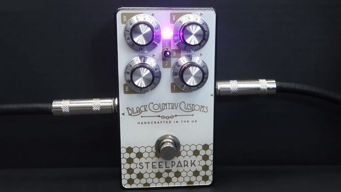 Steelpark ma 4 potencjometry i trójpozycyjny przełącznik, co daje spore pole manewru. Dzięki 4 gałkom (Drive, Volume, Bass, Treble) możemy wymodelować brzmienie od wysokich i niskich tonów, poprzez kompresję i przesterowanie do siły, z jaką podbijasz swój wzmacniacz.