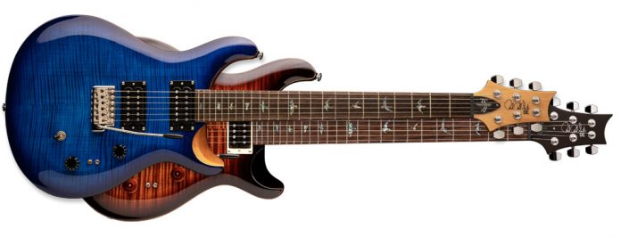 Jeśli chodzi o rodzaje drewna i osprzęt mamy dokładnie to samo. Do budowy korpusu użyto mahoniu, do tego klonowy top oraz gryf i oczywiście palisandrowa podstrunnica na której mamy nabite 24 progi z ptasimi markerami wykonanych z abalonu. Na pokładzie zamocowano humbuckery TCI “S” (Tuned Capacitance and Inductance), a dwa mini przełączniki pozwalają na rozłączanie cewek obydwu pickupów. Ponadto znajdziemy tu: trzypozycyjny przełącznik przetworników, potencjometry Volume i Tone, odlewany mostek PRS Tremolo i klucze PRS.