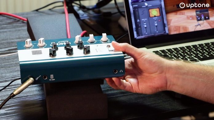 Ten ostatni element łańcucha sygnałowego bazuje na wbudowanym procesorze DSP, co oznacza, że brzmienie instrumentu wraz z emulacją kolumny wykreowane jest całkowicie na pokładzie Sono bez obciążania procesora komputera. Dzięki temu po pierwsze możemy cieszyć się odsłuchem z niewyczuwalną, mikroskopijną zaledwie latencją, a po drugie korzystać z preampu i 3 zapisanych presetów brzmieniowych nawet bez podłączania Sono do komputera! Oznacza to ni mniej ni więcej, że urządzenie możemy potraktować jako przenośny “cichy wzmacniacz”, do którego wpinamy się z naszym pedalboardem, zewnętrznym preampem czy multiefektem, by grać na słuchawkach lub aktywnych głośnikach w domu, na próbie, a nawet na koncercie, podając sygnał prosto do konsoli mikserskiej.