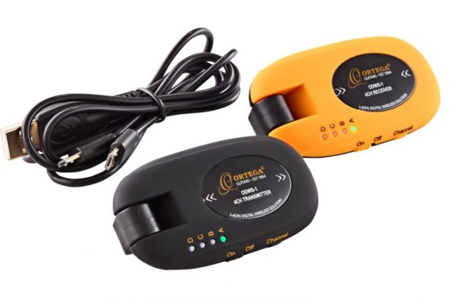 Najważniejsza kwestia to brzmienie. I tu kolejny plus dla cyfrowego zestawu Ortega ODWS-1. Będąc na codzień użytkownikiem i posiadaczem bardzo dobrych kabli nie udało mi się zauważyć różnic w brzmieniu mojej gitary elektrycznej, własnego elektroakustyka czy elektro-klasyka Ortega STRIPED SUITE C/E, którego test przedstawimy Wam niebawem 🙂 Instrumenty grają pełnym pasmem i dynamiką co pozwala nam na swobodne korzystanie z tego systemu w zastosowaniach koncertowych. Jedyny spadek natężenia brzmienia dało się odczuć przy użyciu dwóch odbiorników przy jednym nadajniku z gitary, gdzie sygnał był rozdzielany na dwa kanały. To jednak też nie był problem, bo mogłem go skorygować potencjometrem GAIN na wzmacniaczu.