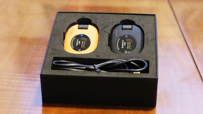 Zawartość pudełka to jeden nadajnik w kolorze czarnym (transmitter), jeden odbiornik w kolorze pomarańczowym (receiver). Wartym podkreślenia jest fakt, że w zestawie otrzymamy także podwójny kabel ładowania USB dzięki czemu możemy jednocześnie ładować oba urządzenia. W pudełku znajduje się także instrukcja obsługi ale zestaw ODWS-1 jest tak intuicyjny w obsłudze, że praktycznie nie będzie Wam potrzebna.