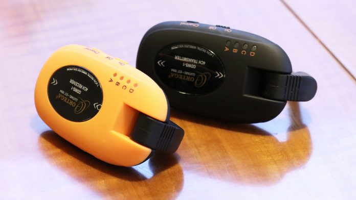 Ortega ODWS-1 posiada funkcję cyfrowej, bezprzewodowej transmisji dźwięku na czterech oddzielnych pasmach transmisji. Są to kanały A, B, C oraz D. Funkcja ta daje nam kilka możliwości. Po pierwsze – możemy używać czterech zestawów na jednej scenie, gdzie każdy zestaw będzie działał na innym kanale i nie będzie to tworzyło żadnych problemów typu przerywanie sygnału, czy wejście sygnału jednego instrumentu na drugi. Po drugie – daje bardzo ciekawą opcję rozdzielenia sygnału z jednego nadajnika na więcej odbiorników.