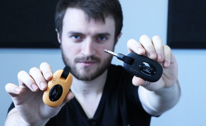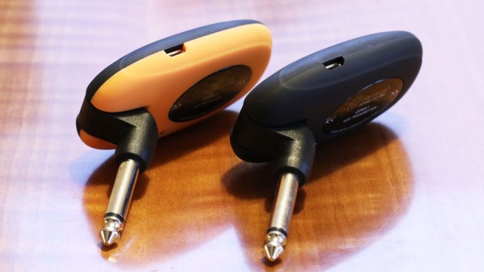Nadajnik oraz odbiornik wykonane są z solidnego plastiku. Różnią się jedynie kolorem oraz napisem: transmiter (czarny), receiver (pomarańczowy). Owalny kształt sprawia, że przyjemnie leży w dłoni i wygodnie się go obsługuje. Jack jest ruchomy, a jego kąt wychylenia to 180 stopni. Jest to dobre rozwiązanie, które pozwala na wpięcie systemu do różnego rodzaju wejść we wzmacniaczach, mikserach czy gitarach. Z lewej strony widnieją cztery diody oznaczone literami A, B, C, D. Diody te posiadają dwie funkcje. Z jednej strony informują nas o stanie baterii, z drugiej zaś wyświetlają aktualnie wybrany kanał transmisji. Dalej obok nich jest przełącznik ON/OFF służący do włączania oraz wyłączania sprzętu. Po tej samej stronie jest jeszcze przycisk CHANNEL, służący do przełączania kanałów transmisji sygnału. Z prawej strony jest umiejscowione wejście micro USB, gdzie wpinamy kabel ładujący.