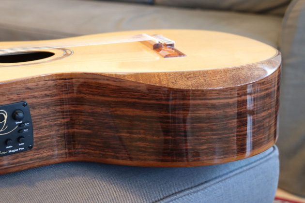 Gitara Ortega Private Room Custom Shop Stripped Suite C/E posiada zaprojektowany od początku equalizer przeznaczony do strun nylonowych, wspierający naturalny sound – The MagnusPro – NL.