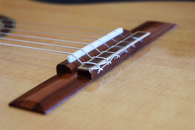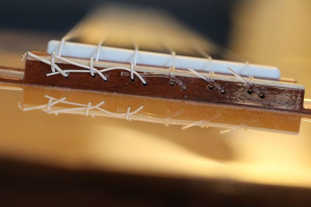 W mostku, który znajduje się na korpusie gitary jest 12 otworów (po dwie na każdą strunę). Jest to bardzo dobre rozwiązanie. Możliwość ta daje strunom szansę na szybkie złapanie stroju dzięki mocnemu zaciskowi. Na spokojnie można wymienić struny 3 godziny przed występem, nastroić gitarę, struny nieco ponaciągać, odstawić na godzinkę, powtórzyć strojenie i gitara jest gotowa do czystej gry! A jest to rzadkość wśród klasyków nawet z wyższej półki.