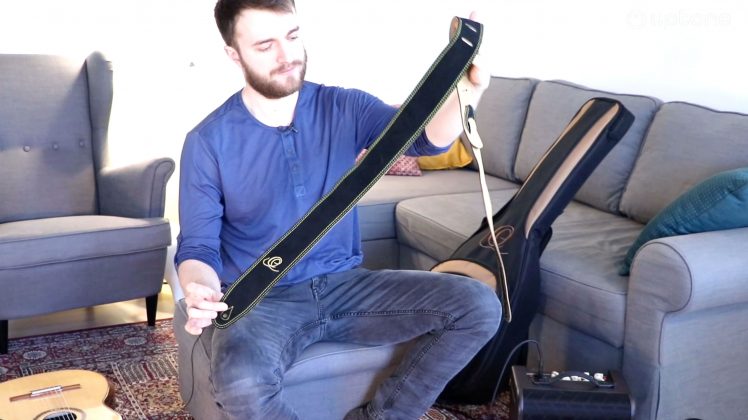Ważną informacją jest to, że instrument wyposażono także w zaczepy straplock, pozwalające na zaczepienie gitary na pasku, który otrzymujemy w zestawie. Pasek jest bardzo elegancki i skórzany co gwarantuje nam komfort i wytrzymałość. Ale to nie koniec prezentów. W zestawie otrzymamy także porządny i elegancki miękki futerał z dwoma kieszeniami i szelkami, dzięki czemu możemy go nosić na plecach.