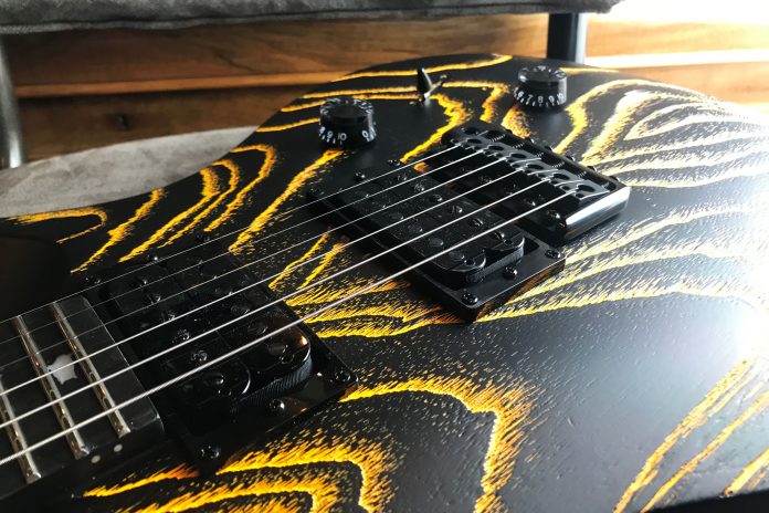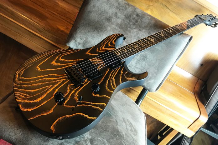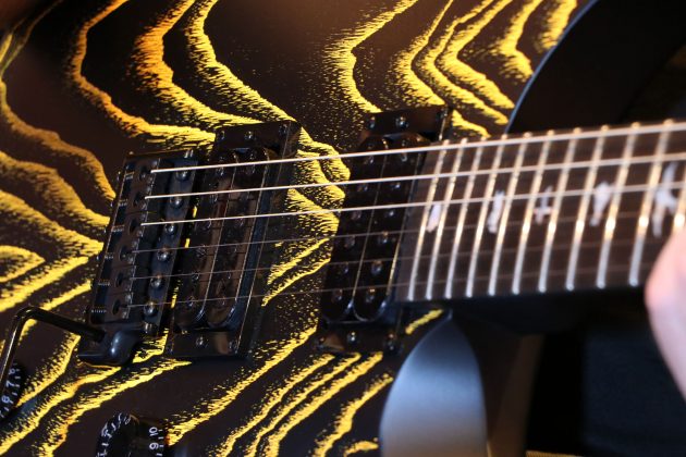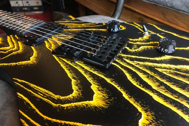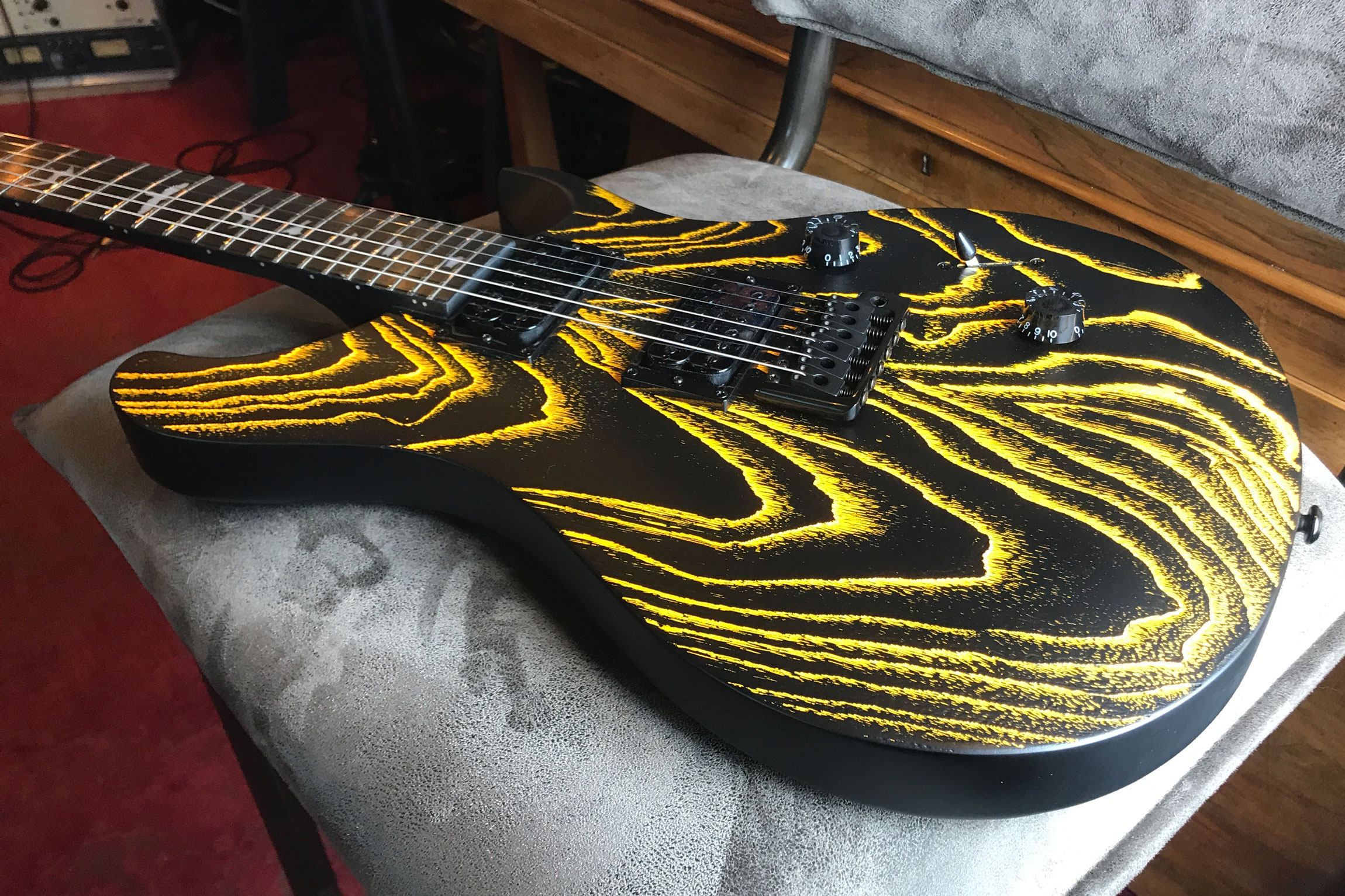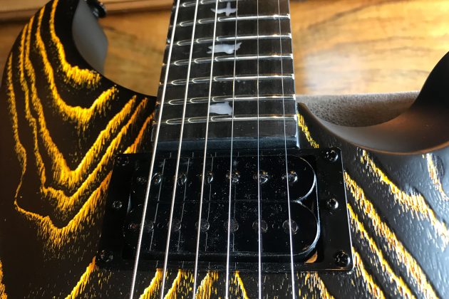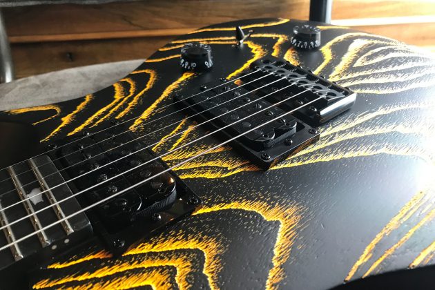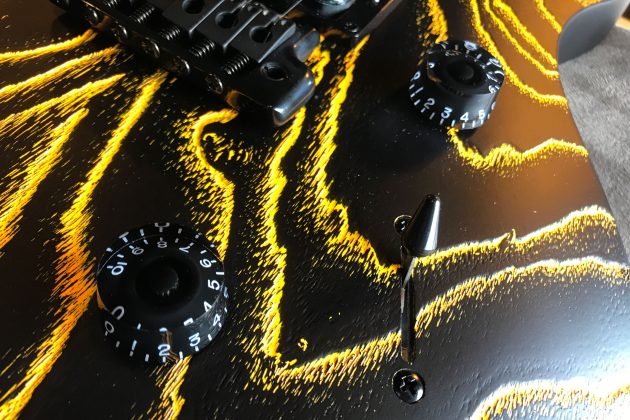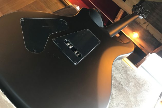Pozostała część korpusu oraz szyjka pokryte są czarnym lakierem z satynowym wykończeniem, co przekłada się zarówno na znakomity efekt wizualny (gitara wygląda jakby była zrobiona z jednego kawałka skały wulkanicznej), jak i na wrażenia dotykowe – matowa powierzchnia ma mniejszą przyczepność niż lakier wypolerowany na wysoki połysk, przez co nie przykleja się do skóry, pozwalając rękom gładko ślizgać się po szyjce i korpusie.