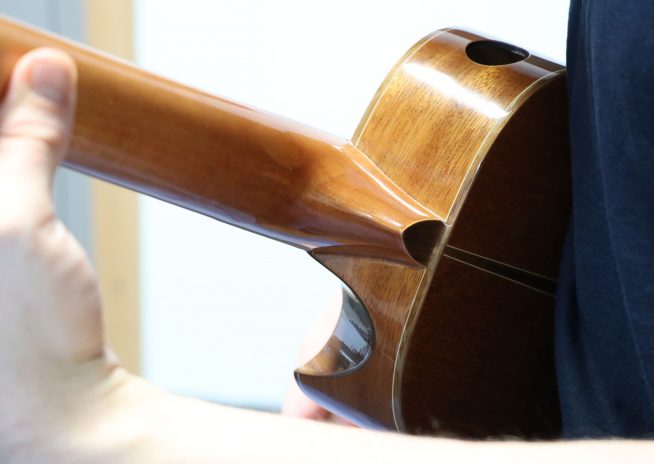 Tył korpusu jest uwypuklony co daje więcej przestrzeni w pudle na rezonowanie dźwięku.