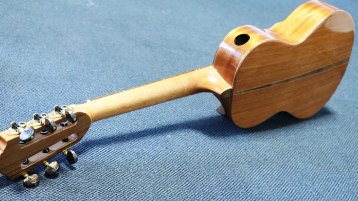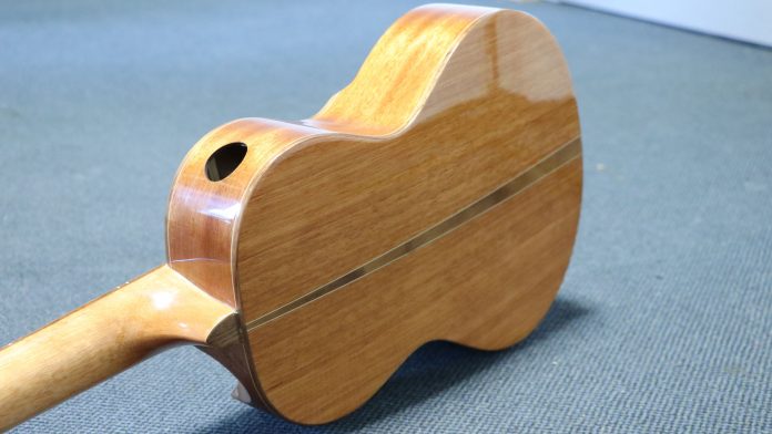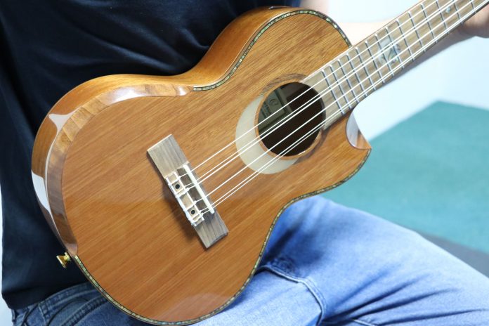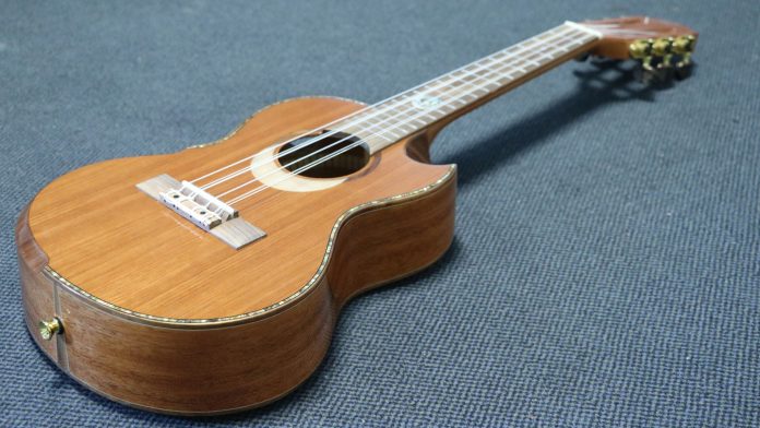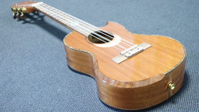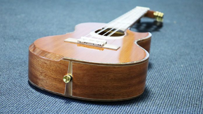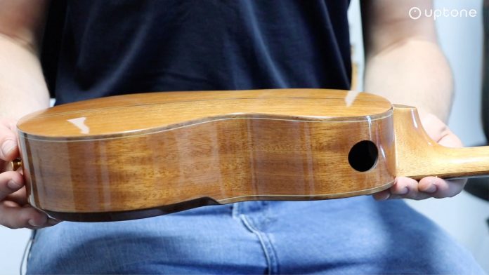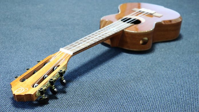 Do gryfu użyto drewna zwanego Okoume (Aucoumea klaineana). Według sześciostopniowej skali gęstości, okoume należy do drewna lekkiego (klasa V). Podstrunnica oraz mostek to orzech włoski. Jak już wcześniej wspominałem, rozmiar instrumentu klasyfikuje się na tenor. Liczba progów – 18, szerokość gryfu – 38mm, a długość menzury to 430mm. W swojej konstrukcji posiada jeszcze trzy ułatwiające grę rozwiązania. Wbudowany podłokietnik, lekkie wcięcie typu cutaway oraz dodatkowy dźwiękowy otwór w pudle rezonansowym, który ma za zadanie wypuszczać dźwięk prosto w grającego na niej muzyka.