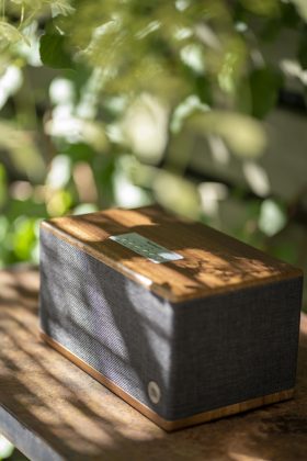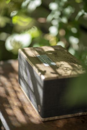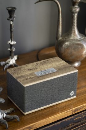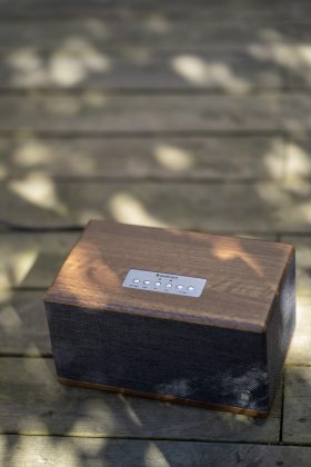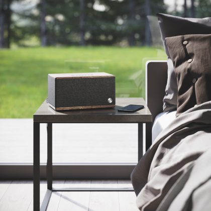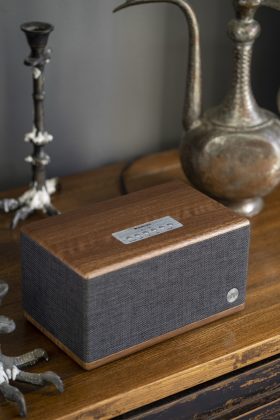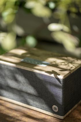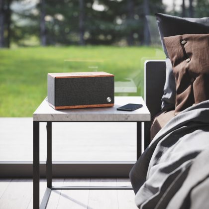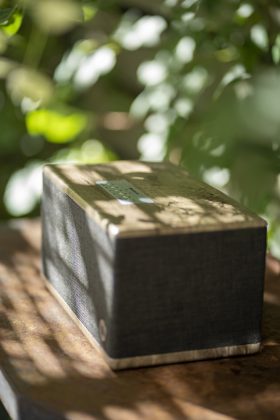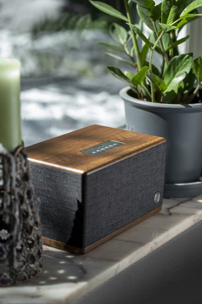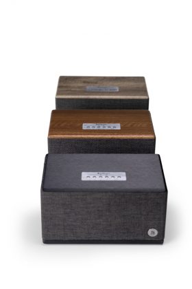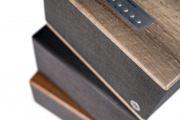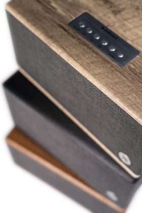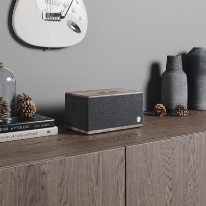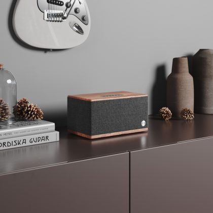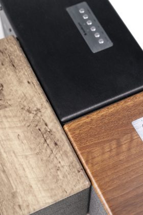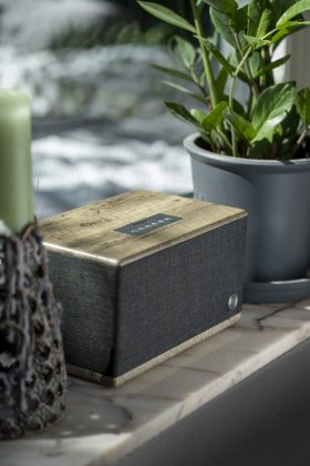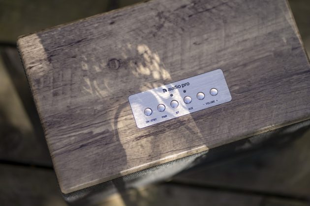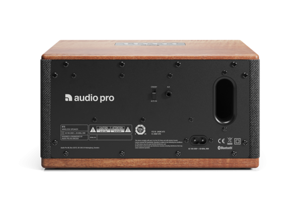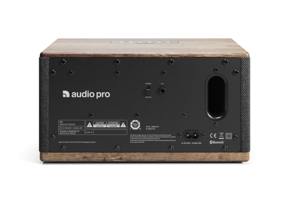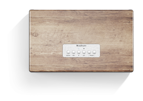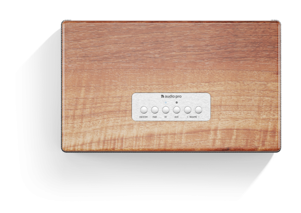 Najnowszy głośnik Audio Pro mimo kompaktowych wymiarów utrzymuje się w typowej dla producenta, skandynawskiej stylistyce. Przód i boki urządzenia pokryte są tkaniną, natomiast górna i dolna powierzchnia wykonane są z paneli drewnianych w jednej z trzech wersji kolorystycznych: czarnej, orzecha włoskiego i dryfującego drewna.