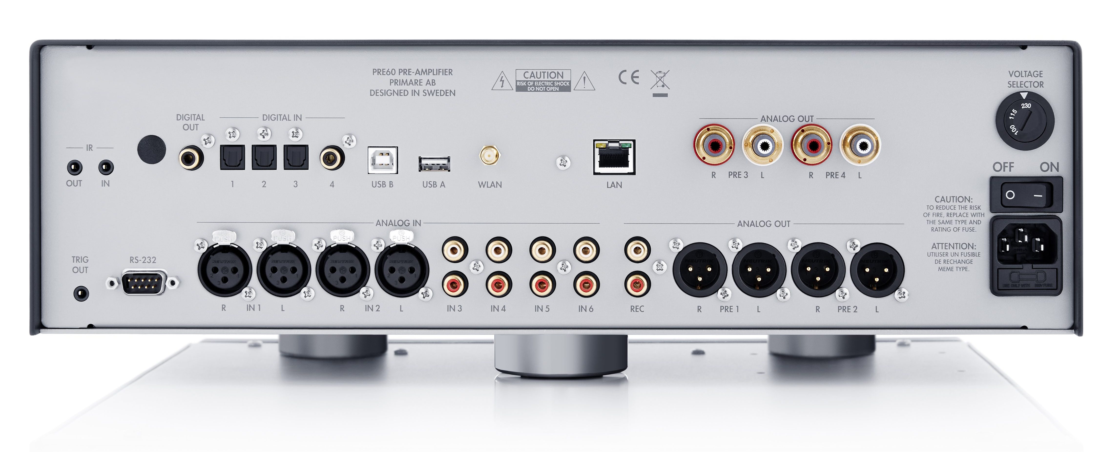 PRE60 posiada także zintegrowany DAC z odtwarzaczem strumieniowym, którego sterowanie umożliwia aplikacja Primare App oraz Primare AIR na iOS oraz na Android. Aplikacja umożliwia wybór i zmianę wejść, regulację głośności, przeszukiwanie zawartości zasobów on-line oraz dostęp do bibliotek muzycznych. W pełni zbalansowana koncepcja wbudowanego DAC-a oparta na Crystal DSD, tej samej wersji, która została wykorzystana w modelu DAC30.