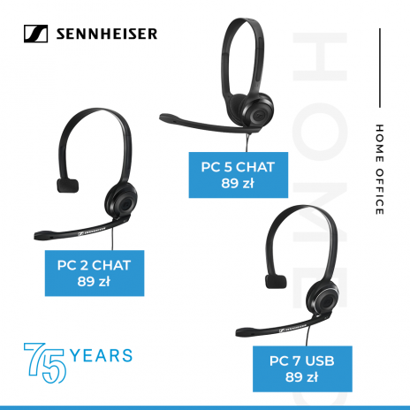 Sennheiser w ofercie konferencyjnych zestawów słuchawkowych ma przeszło 20 modeli w cenach zaczynających się już od 89 zł. Znajdziemy tu m.in. słuchawki PC 5 CHAT, GSP 600 czy PXC 550-II Wireless. Pełną ofertę znajdziecie na stronie producenta.
