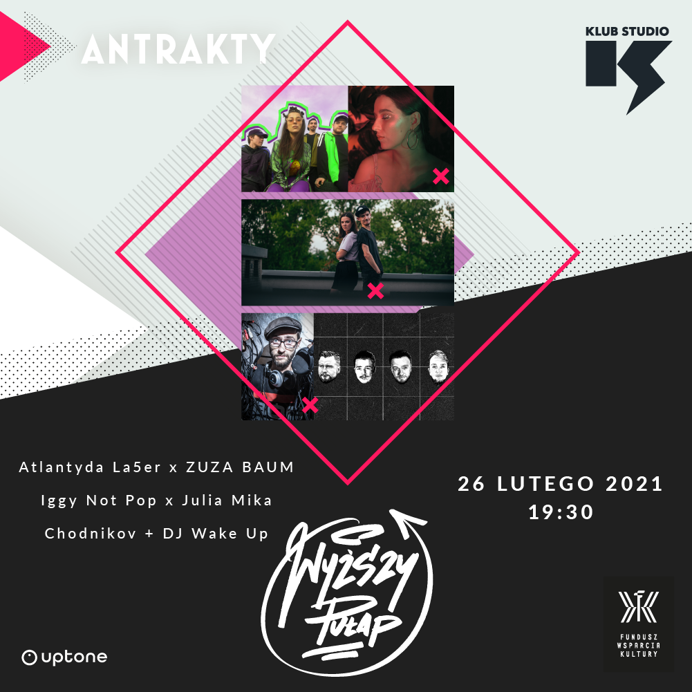 Wyższy Pułap Fest odbędzie się w ramach Antraktów krakowskiego Klubu Studio. Koncerty odbędą się bez udziału publiczności i będą streamowane za pośrednictwem portali Facebook i Youtube. Wystąpią debiutujący na scenie Chodnikov, Iggy Not Pop w towarzystwie Julii Miki oraz Atlantyda La5er x ZUZA BAUM. Całość dopełni pełen jazzu, funku i rapu set DJ Wake Up’a.