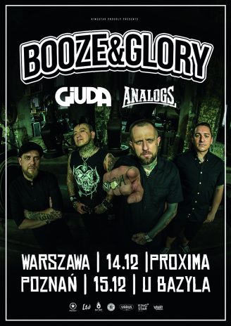 Booze & Glory stale koncertuje, ciężko pracując nad swoją rozpoznawalną marką. W tym roku grupa obchodzi 10-lecie swojej działalności, a we wrześniu wydaje nowy album! Razem z Giuda i The Analogs wyruszają w europejską trasę, która rozpocznie się już w listopadzie! Oczywiście nie mogło zabraknąć dwóch przystanków w Polsce, a będą miały one miejsce 14.12 w Warszawie oraz 15.12 w Poznaniu!