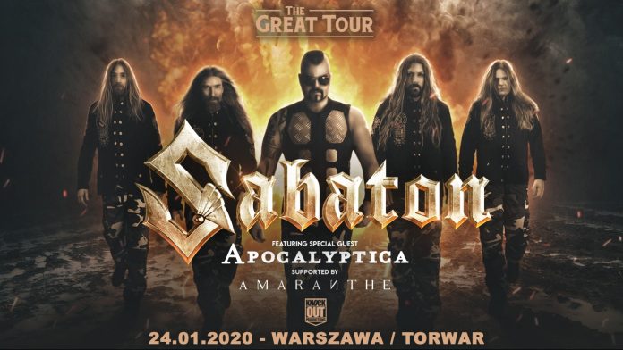 Już 24 stycznia 2020 roku przez Warszawę przejdzie istne metalowe tornado. Na warszawskim Torwarze odbędzie się koncert szwedzkiej formacji Sabaton. Supportem kapeli, podczas całej planowanej trasy, będą Apocalyptica oraz Amaranthe.