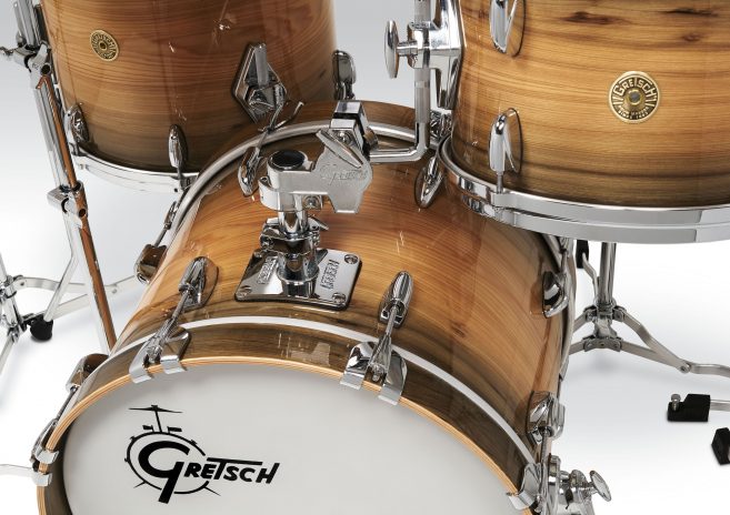 Jak wspominaliśmy wyżej, te kolekcjonerskie zestawy wykonywany ręcznie z egzotycznego drewna w amerykańskiej fabryce marki, będą dostępne w limitowanym nakładzie do 60 zestawów dostępnych w dwóch konfiguracjach, a każdy z nich będzie wyposażony w klasyczny osprzęt Gretscha jak obręcze die cast, mocowany bezpośrednio do korpusu bębna basowego uchwyt tomu, oraz naciągi Gretsch Permatone by Remo.