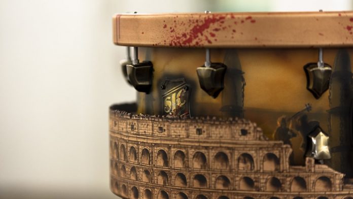 Wow! – inaczej nie da się tego opisać. Ręczna robota na najwyższym poziomie – takiego dzieła nie powstydziłby się żaden szanujący się profesjonalny stolarz. Klonowy korpus przeszedł żmudne wypalanie, malowanie aerografem a nawet wyrzynanie! Werbel Colosseum który podczas tegorocznych Namm Show zaprezentowała firma SJC Custom Drums po prostu urywa d…osłownie wszystko.