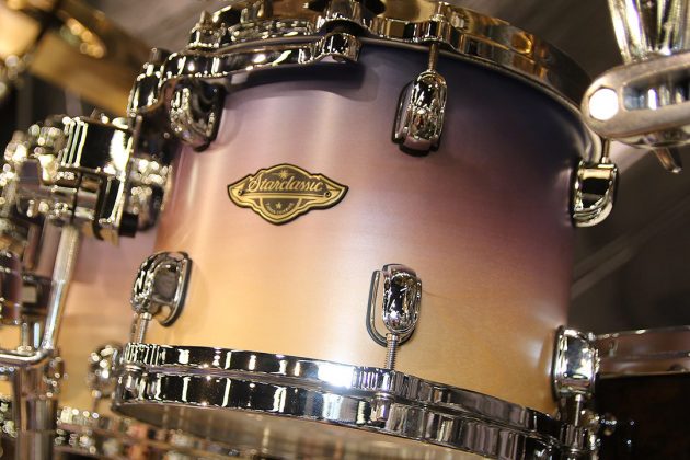 Jeśli chodzi o samą konstrukcję bębnów z serii Starclassic Walnut/Birch to warto przypomnieć, że miała ona swoją premierę dokładnie rok temu. My pisaliśmy o niej także TUTAJ: https://uptone.pl/perkusja/thaddeus-dixon-i-tama-starclassic-walnut-birch. Hybrydowe korpusy tomów i werbla mają grubość 6 mm i składają się z czterech zewnętrznych warstw brzozy oraz dwóch wewnętrznych warstw czarnego orzecha amerykańskiego. Bęben basowy składa się z pięciu warstw brzozy i dwóch orzecha, a ich grubość to 8 mm. Jeśli chodzi o zastosowane rozwiązania to znajdziemy tu Quick-Lock oraz Star-Cast, tom holder Swivel-Wing, claw hooki z gumowymi podkładkami chroniącymi drewno, odlewane obręcze typu Die-Cast, nóżki floorów z gumą Air Pocket oraz naciągi Evans.