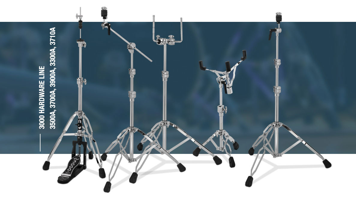 DW Drums 3000 Series przeznaczona jest dla każdego perkusisty, jednak ze szczególnym ukierunkowaniem na początkujących i średnio-zaawansowanych bębniarzy, którzy poszukują zaufanego hardware’u w bardzo dobrym stosunku ceny do jakości. Mechanizmy statywów serii 3000 wykonane są masywnie ale nie za ciężko. Pracują lekko, szybko i mają pełną gamę regulacji. Teraz producent oferuje szereg nowych rozwiązań i funkcji znanych z wyższej linii.