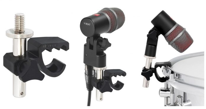 Cały proces szybkiego i dowolnego mocowania w/w mikrofonów nie byłby możliwy, gdyby nie dedykowany i specjalnie opracowany system mocowania sE Electronics V CLAMP. Jak zapewnia producent, jest to obecnie najszybszy i najbardziej praktyczny system mocowania, kompatybilny z dowolnym werblem czy tomem. Mimo, iż został stworzony głównie do pracy z mikrofonem V BEAT to jest kompatybilny także z innymi popularnymi mikrofonami.