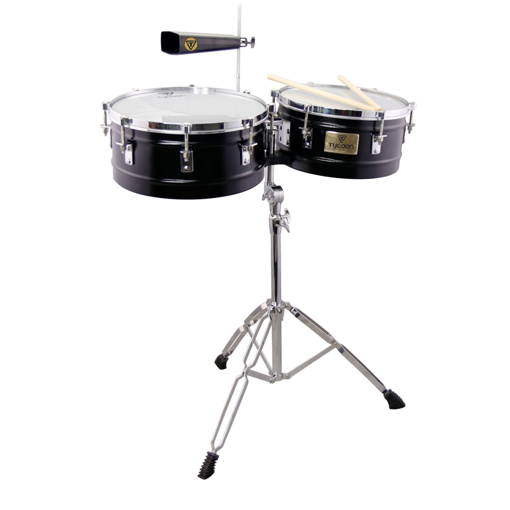 Timbalesy Tycoon Supremo Series dedykowane są dla mniej zamożnych muzyków, szukających dobrze brzmiących instrumentów w przystępnej cenie. W zestawie poza dwoma timbalesami 13″ i 14″ wykonanych ze stali nierdzewnej w czarnym proszkowym wykończeniu, znajdziemy także dedykowany statyw, pare pałek timbalesowych, klucz do strojenia oraz dzwonek (cowbell). W razie potrzeby można oczywiście doposażyć się w dedykowany opcjonalny case.