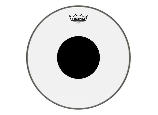 - CONTROLLED SOUND CLEAR BLACK DOT: Jest to naciąg pojedynczy (jednowarstwowy) przezroczysty o grubości 10-mil (0,25 mm) z łatką wzmacniającą 5-mil (0,13 mm) na wierzchu. Jest on dostępny w szerokiej palecie rozmiarów od 6″ do 40″. Są one bardzo wyraziste, o kontrolowanym, skupionym i krótkim wybrzmiewaniu, a dodatkowym atutem dzięki zastosowanej “łatce” jest wzmocnienia żywotności i wytłumienia niepotrzebnych przydźwięków. Jak wypowiadają się specjaliści ze sklepów muzycznych: przed laty był to najczęściej stosowany model na tomy przez rockowych bębniarzy. Coś dla miłośników brzmienia “vintage” i naturalnego krótkiego brzmienia tomów. Patrz perkusiści kapel heavy metalowych z lat 80.