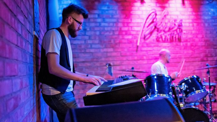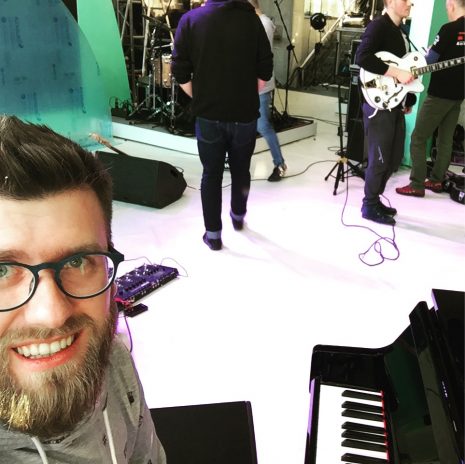 Krzysiek: Zaczęło się od grania piosenek religijnych m.in. TGD (trzecia godzina dnia), jednak znowu okazało się że mam trudności. Nie potrafiłem grać bez nut i przestawić się z harmonii klasycznej na tą bardziej “rozrywkową”. YouTube okazał się bardzo pomocny w tej kwestii. Znowu spędzałem każdą wolną chwile na ćwiczeniach i analizowaniu “co tu jest grane” jaka harmonia, jakie dźwięki itd. Starałem się kopiować innych muzyków i przyniosło to efekty. Spotykałem się z kolegami po jazzie żeby trochę otworzyli mi głowę na inne granie, improwizacje. Tu bardzo pomocny był mój dobry kolega Arek Krawiel, który pokazał mi bardzo wiele. Szczególnie w graniu funkowych i soulowych groovów. No i po tych wszystkich latach jestem tu gdzie jestem.