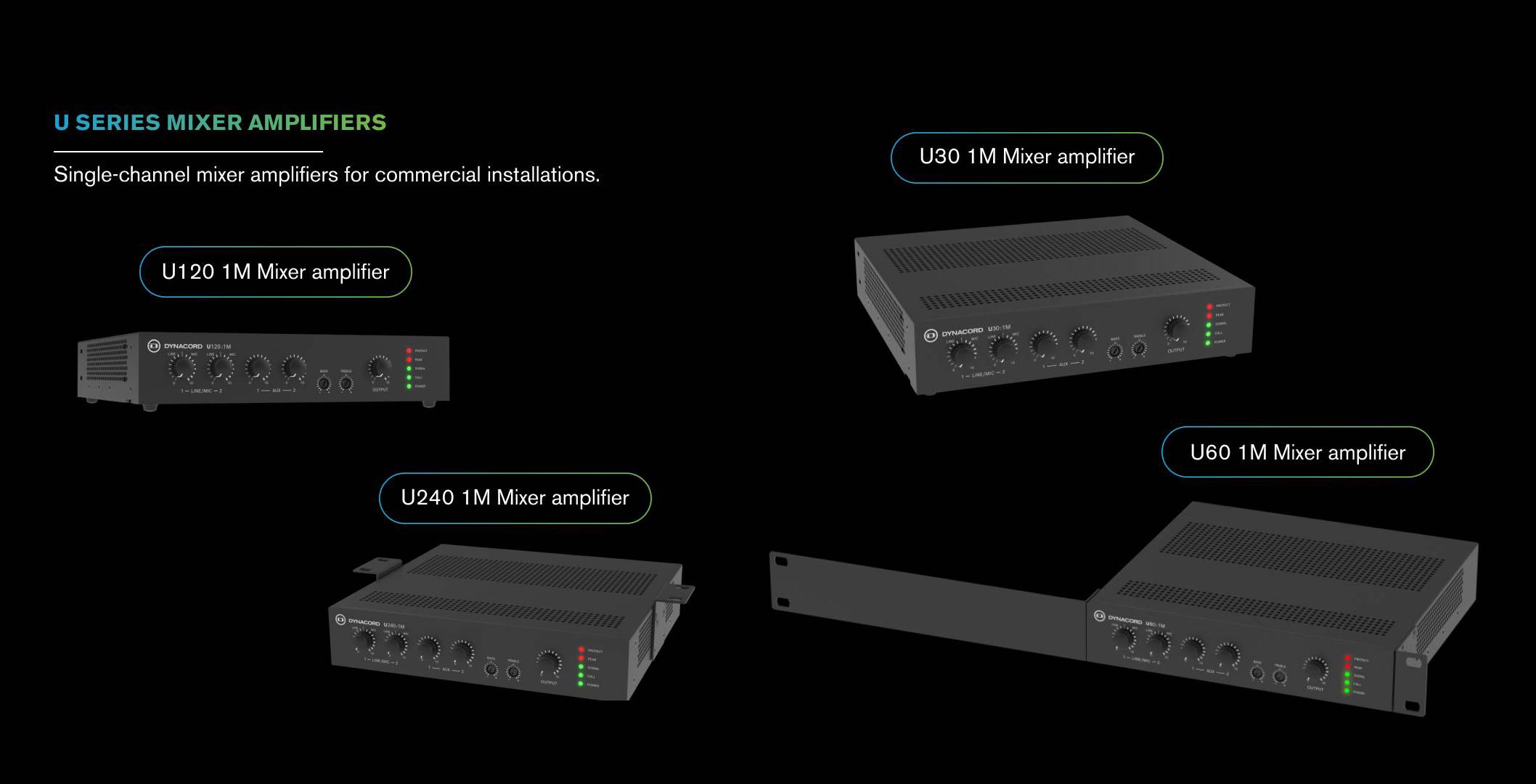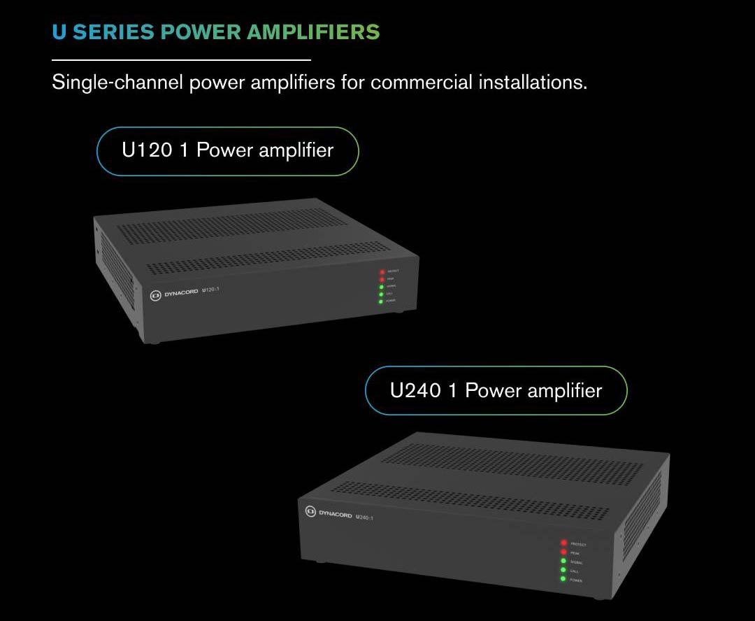 Dynacord, uznana marka w branży pro audio, wprowadza na rynek nową serię wzmacniaczy komercyjnych U, składającą się z sześciu modeli: czterech powermikserów oraz dwóch końcówek mocy. Wzmacniacze te, oferujące moc od 30 do 240 W, zamkniętych  w obudowach ½U. Kompaktowa budowa i wszechstronne funkcje pozwalają na elastyczne i dyskretne instalacje, co czynią je świetnym wyborem dla mniejszych przestrzeni, takich jak kawiarnie, sklepy czy biura.