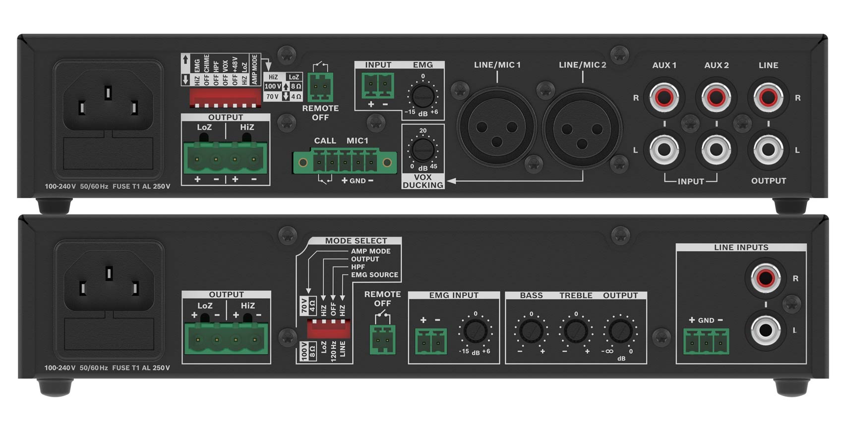 • Dwutonowy sygnał do ważnych powiadomień: Wzmacniacze wyposażone są w funkcję dwutonowego sygnału, która pozwala wyróżnić istotne komunikaty.