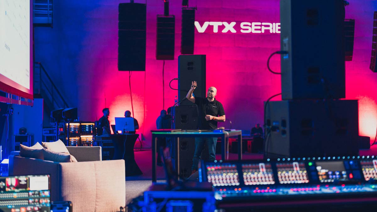 Kolejny punkt programu dotyczył systemu JBL VTX, który poprowadzili Ben Todd oraz Maciej Barański (Projektant / Specjalista ds. systemów nagłośnieniowych – ESS Audio). Ten etap wydarzenia pozwolił porównać system VTX A6, VTXA8 oraz VTXA12 i zaprezentował VTX F35/95, nie tylko w teorii, bo po oficjalnej prezentacji przyszedł czas na odsłuchy (VTX A6 2x10szt. z 7 subami B15 w konfiguracji arc, VTX A8 2x8szt. i A12 2x8szt. z subami 6szt. G28 w konfiguracji arc oraz VTX F35/95 2x1szt. podparte subami 2x3szt. B18).