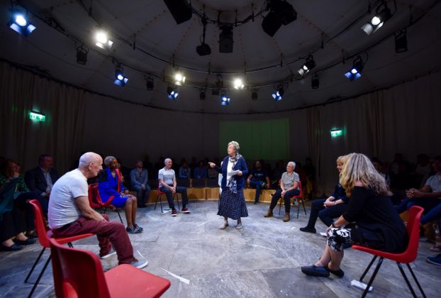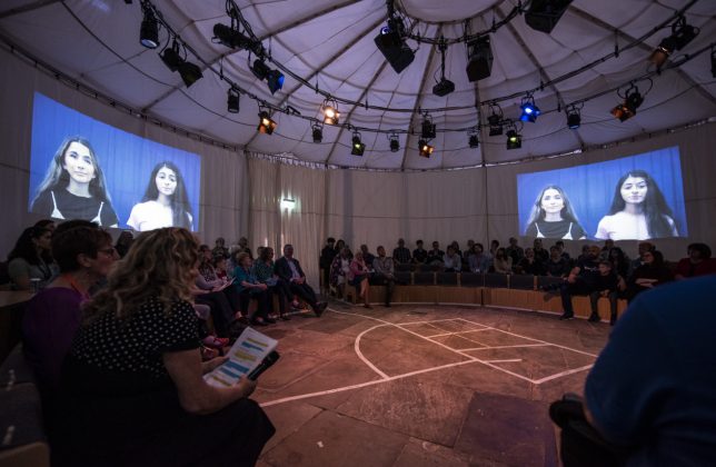Wróćmy jednak do tematu… The Den to wyjątkowy i pomysłowy spektakl, który został zaprojektowany przez wielokrotnie nagradzane studio architektoniczne Haworth Tompkins jako nieformalna przestrzeń z miejscem, w którym mieszkańcy mogą tworzyć i dzielić teatr oraz oglądać prace z Royal Exchange. Specjaliści Pro audio, Autograph Sales & Installations, dostarczyli kluczowe elementy wyposażenia wzmacniającego dźwięk dla nowej przestrzeni, w tym właśnie siedem kompaktowych, pełnopasmowych, aktywnych systemów głośnikowych KV2 Audio EX10.