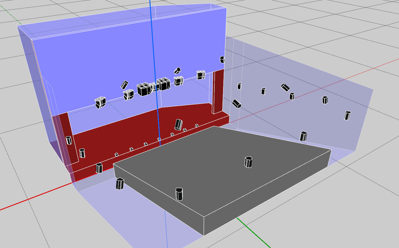 Dzięki takiemu dobraniu urządzeń sala nie wygląda na przeładowaną głośnikami, a zachowuje pełen efekt immersji na każdym miejscu widowni i w każdej z trzech płaszczyzn. Całością steruje procesor L-ISA II oraz wzmacniacze mocy, które znajdują się w szafach rack nad sceną.