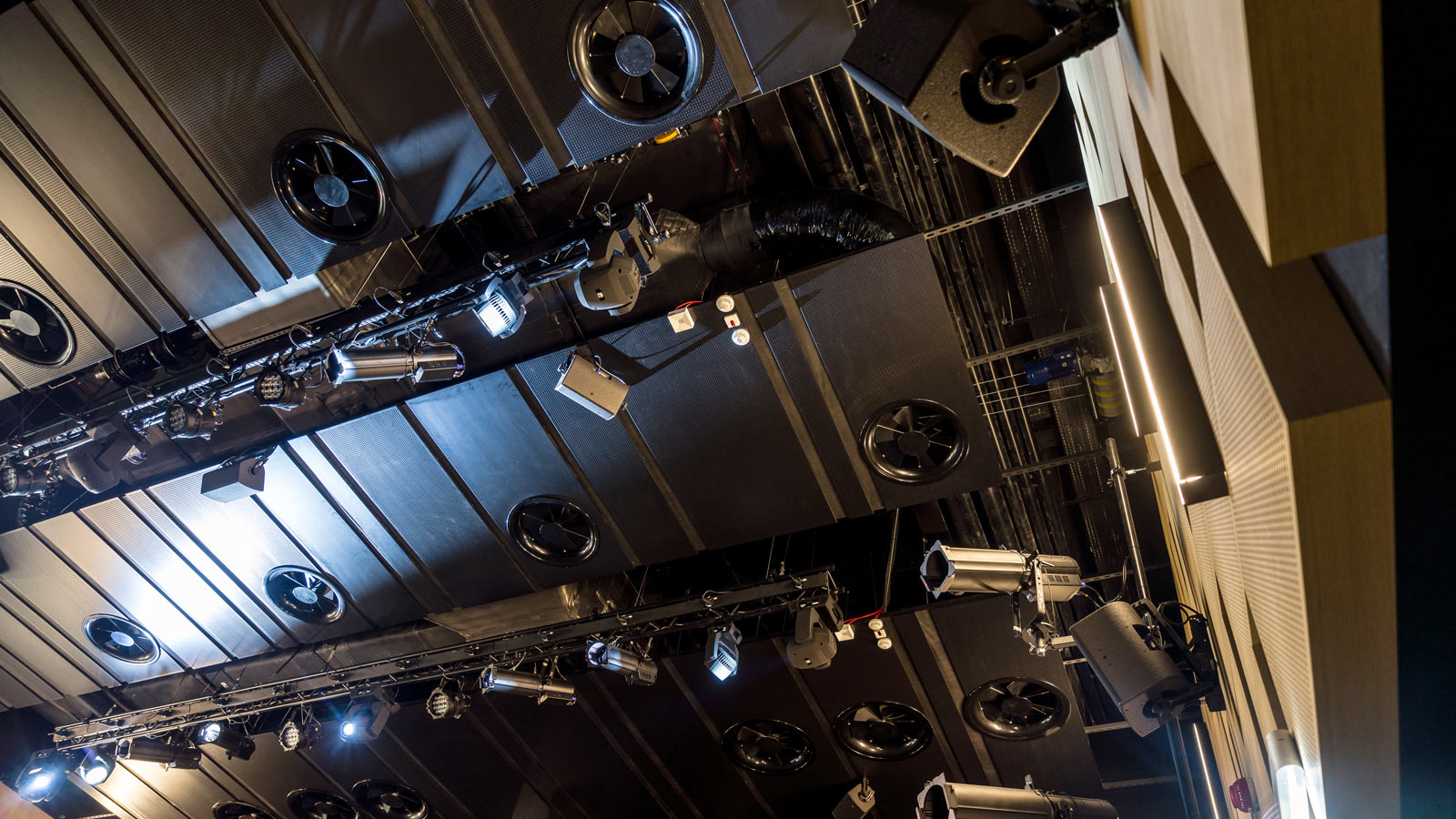 Aby zapewnić konieczną elastyczność sali, reżysernia została wyposażona w uniwersalną i kompaktową konsoletę mikserską marki Digico oraz rozwiązania sieciowe marki Auvitran. Dzięki temu można tu wyprodukować dowolne wydarzenie, od projekcji kinowej po konferencję, zaś w przypadku wydarzeń muzycznych czy teatralnych, konsoleta stawiana jest w przestrzeni widowni. Za sprawą przyłączy i przełączników sieciowych Auvitran jest to wyjątkowo proste i zajmuje minimum czasu. We wszystkich istotnych pomieszczeniach, takich jak garderoby i korytarze, zainstalowane są elementy systemu nasłuchu scenicznego, który jest oparty na spójnych ze sobą rozwiązaniach marek Bosch i Electro-Voice.