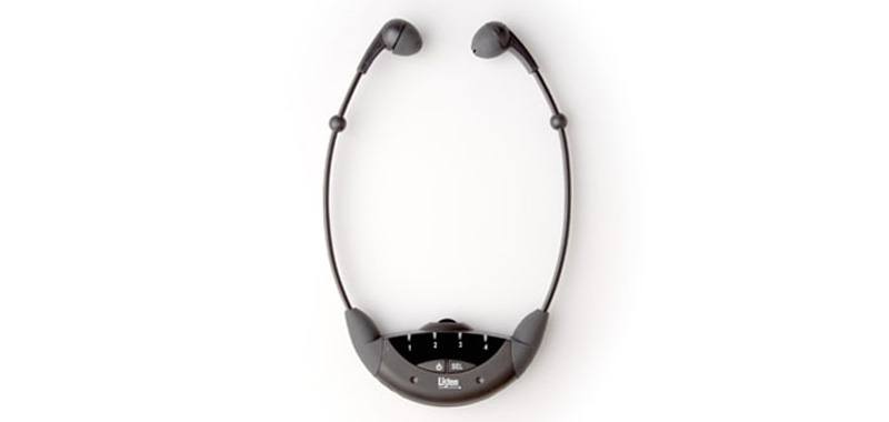 Elementy systemu Listen Technologies, których użyto w teatrze: