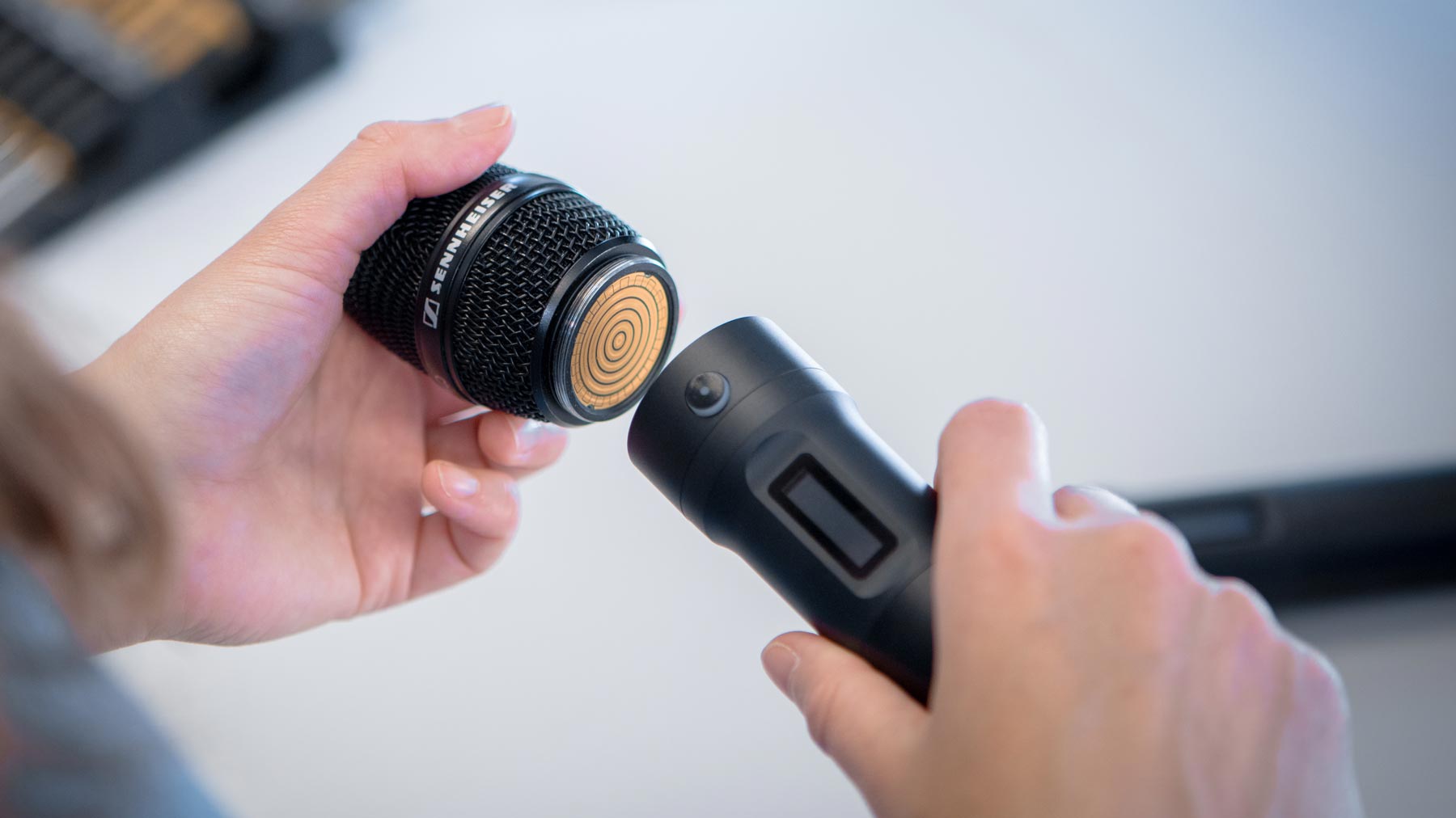 Nowy mikrofon ręczny Spectera SKM to urządzenie o aluminiowej, anodowanej obudowie, wyposażone w wyświetlacz OLED oraz standardowy interfejs kapsułowy Sennheisera – kompatybilny zarówno z główkami Sennheiser, jak i Neumann.