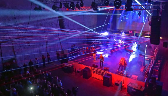 Celem instalacji systemu nagłaśniającego było zachowanie jak najcichszego otoczenia za podium i sceną oraz ograniczenie dźwięku do 100 metrów dla lokalizacji i publiczności – oczywiście z uwzględnieniem unikalnych właściwości odbijających dużego bunkra. 2x 8 modułów HDL 30A (wiszące) i 4x Sub 9007-A (boczne) 4x Sub 9004-A (środkowe) działały jako główne urządzenie nagłaśniające. Każdy z nich został skonfigurowany w trybie Cardioid i zoptymalizowano akustykę za pomocą wstępnie zaprogramowanego brzmienia. Moduły RCF TT22-A służyły jako wypełnienia przednie, a 2 TT052-A jako wypełnienia bliskie. Podczas gdy muzycy zespołu grali z systemem dousznym, wokalista i frontman Johnny Zatylny wolał występować z dwoma monitorami (TT25CXA) na scenie. Konfiguracja PA była również doskonała, a wokalista i zespół byli podekscytowani dźwiękiem na scenie.