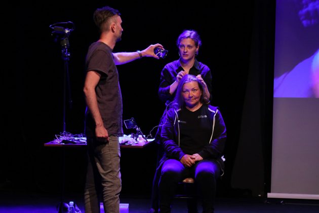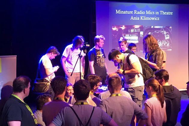 Wisienką na torcie była część poświęcona omikrofonowaniu spektakli granych na żywo w teatrach. Ania Klimowicz posiada bogate doświadczenie w montażu mikrofonów radiowych dzięki pracy przy musicalach na West Endzie i podczas tras koncertowych, więc była idealnym kandydatem to przeprowadzenia tej części szkoleń. Co tu dużo pisać… Praktyka, praktyka i jeszcze raz praktyka! Jak mocować, gdzie mocować, cały wachlarz niezbędnych akcesoriów, które pomagają w pracy w teatrze. Tego wszystkiego dowiedzieliśmy się dzięki Ani.