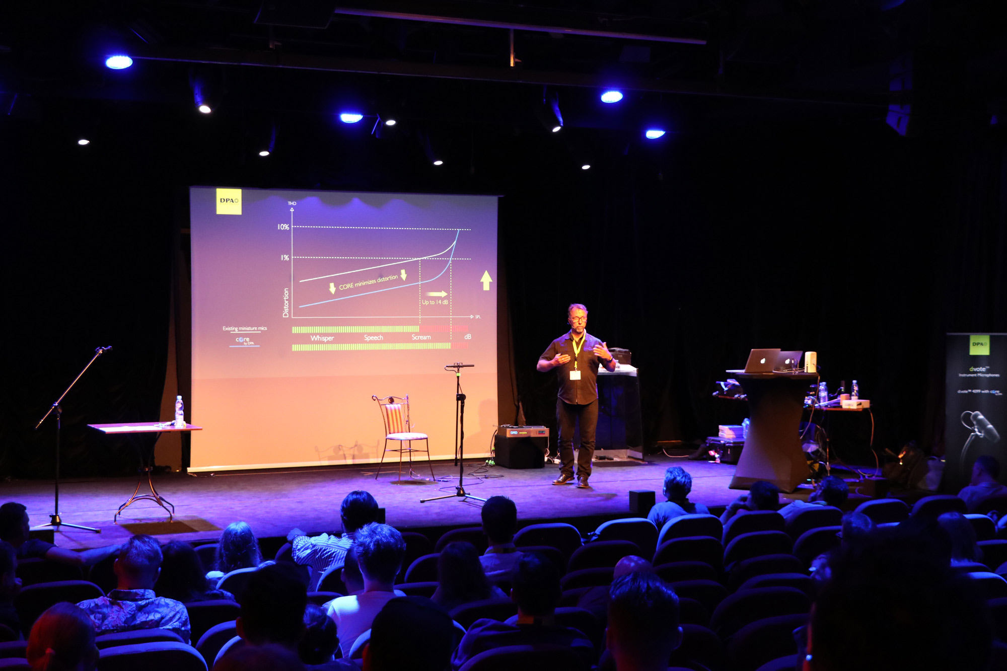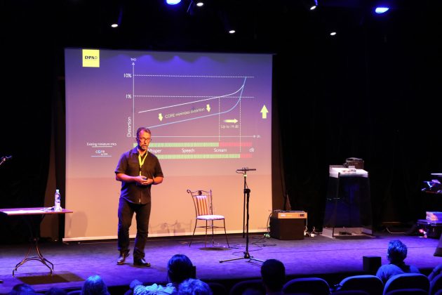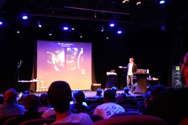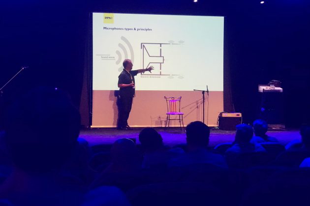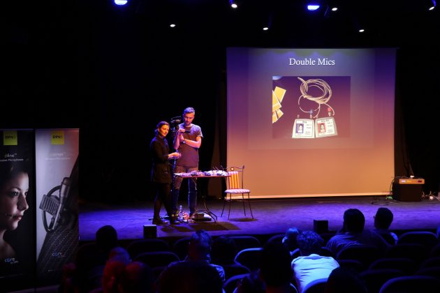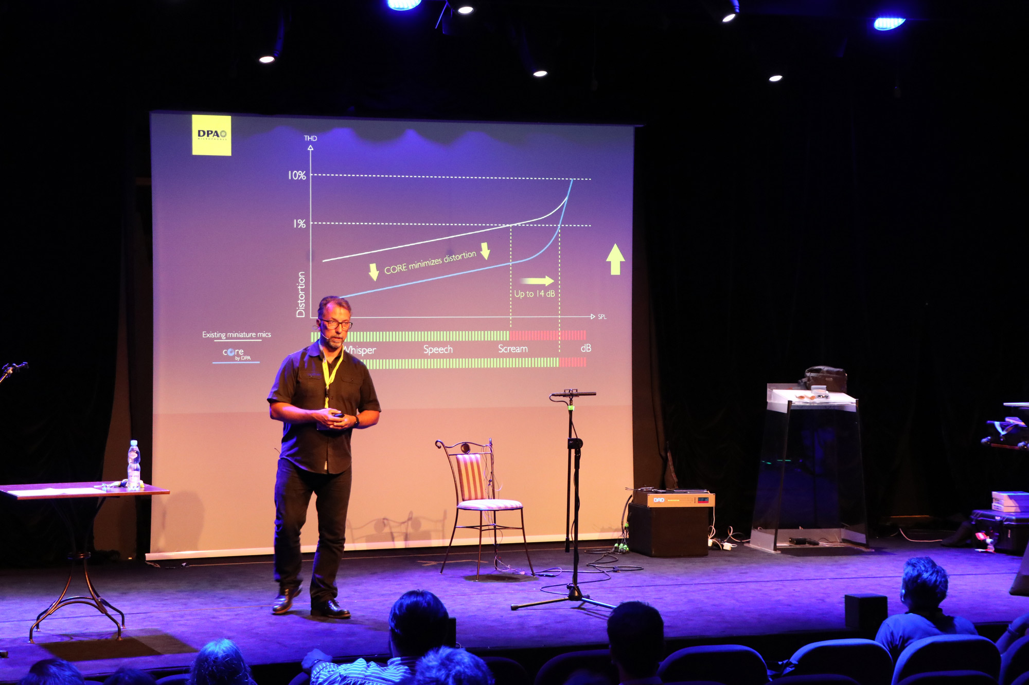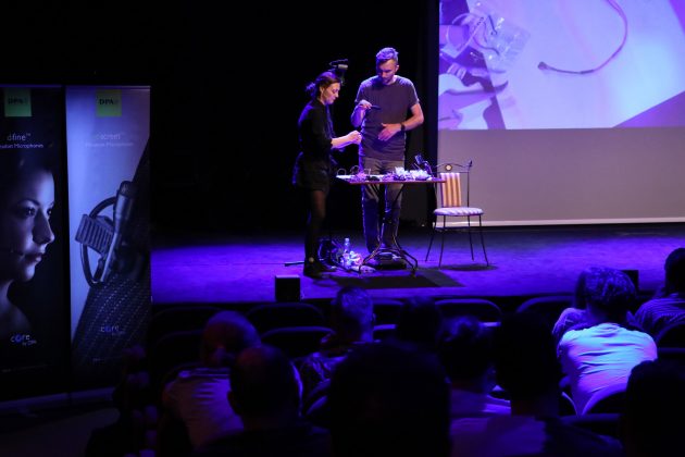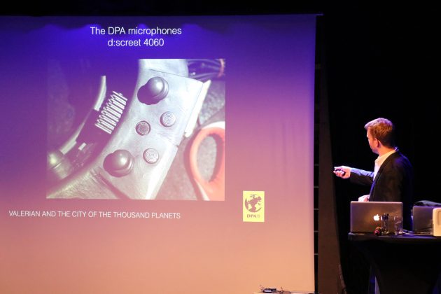 Skoro dowiedzieliśmy się “prawie” wszystkiego o mikrofonach DPA i ich ogólnym zastosowaniu na scenie, przyszedł czas na trudną działkę jaką jest mikrofon na planie filmowym. W filmie liczy się czas, intuicja i niezwykła umiejętność współpracy z wymagającą branżą. Aktorzy, reżyserzy, producenci stawiają poprzeczkę bardzo wysoko sobie i swoim współpracownikom, dlatego idealną osobą do przekazania wiedzy w tym temacie był Stéphane Bucher z Francji. Na swoim koncie ma m.in. udział w hollywoodzkich produkcjach znanych filmów jak „Taken 2”, „Taken 3” czy „Lucy”. Ostatnio nagrywał dźwięk do filmu „Valerian i Miasto Tysiąca Planet” w reżyserii Luca Bessona. Stephane w zasadzie porwał słuchaczy swoją historią, pracą i doświadczeniem jakie posiada. Masa przykładów popartych licznymi planszami i materiałami video, które świetnie obrazowały omawiane zagadnienia sprawiły, że czas poświęcony na tę część minął w mgnieniu oka. Oczywiście i tutaj mogliśmy liczyć na zaangażowanie i pomoc publiczności 🙂