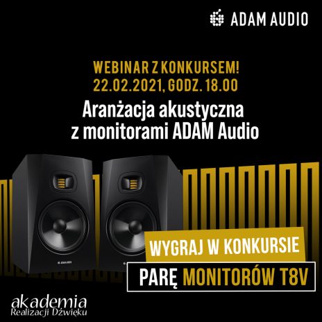 - Podczas webinaru ogłoszony zostanie konkurs, w którym zwycięzca otrzyma parę monitorów ADAM Audio T8V