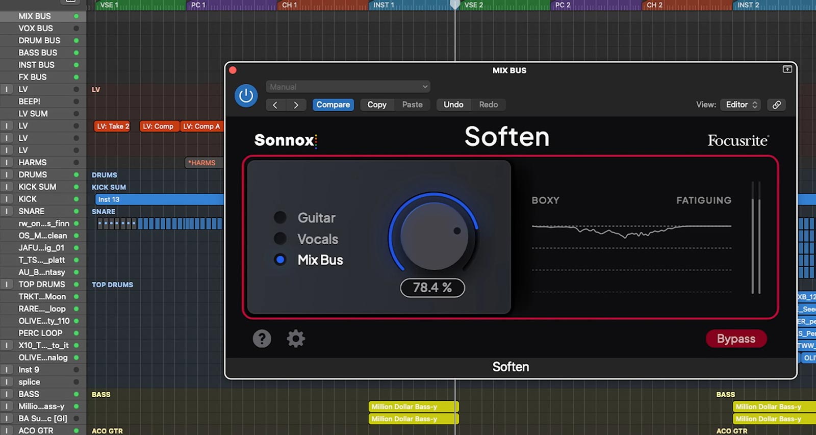 - Mix Bus — wygładza nieprzyjemne górne i środkowe pasmo w całym miksie, poprawiając balans i komfort odsłuchu.