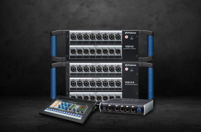 – Nowe stageboksy PreSonus NSB 8.8 i NSB 16.8 (szybkie i łatwe rozwiązanie do przesyłania sygnałów ze sceny do miksera FOH przez sieć AVB),